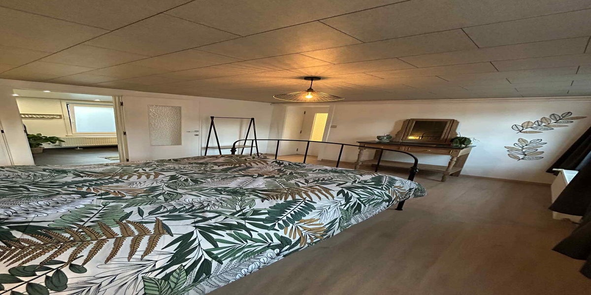 • Une chambre avec un lit double de 1m60 accès direct à la salle de bain attenante (WC, lavabo, douche).